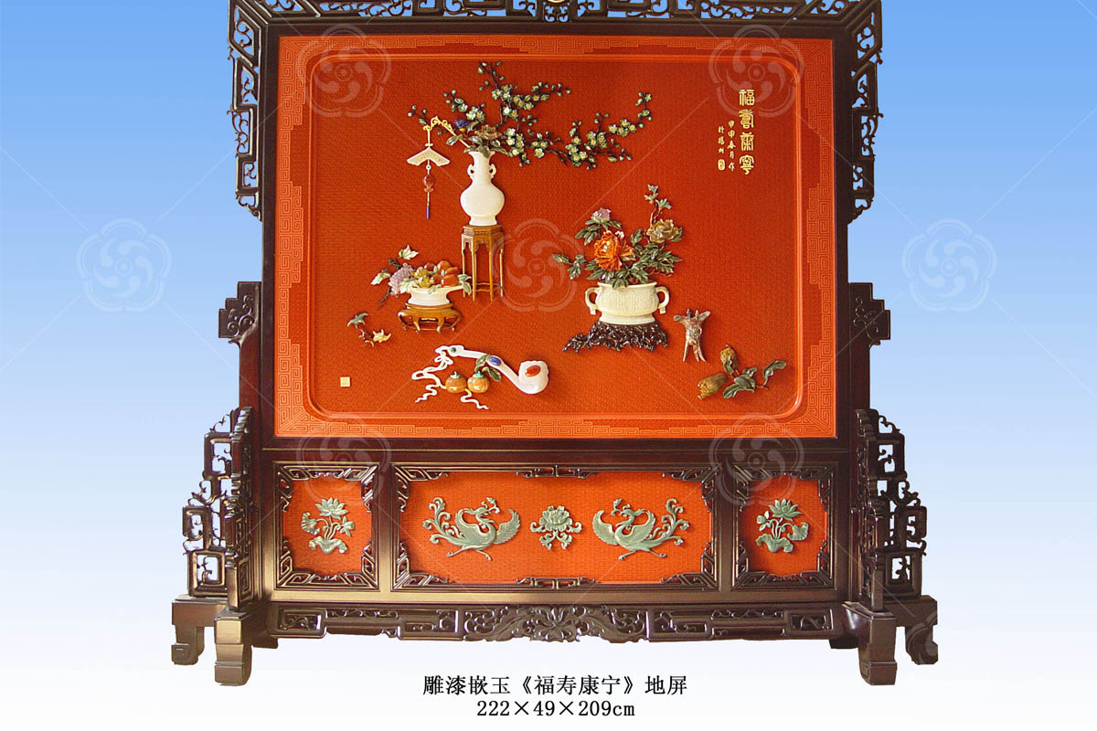 雕漆嵌玉《福壽康寧》博古地屏精品簡介